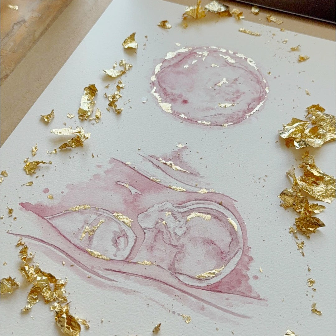 Capture the beauty of your Embryo & Ultrasound Scan photo - We use watercolour to craft a stunning piece of art that showcases your little one's first image. The perfect way to cherish this precious moment forever.